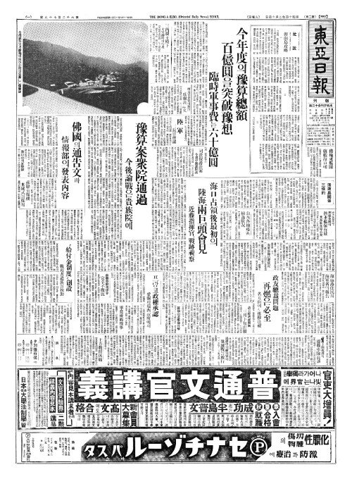 - 今年度豫算總額(금년탁예산총액) 百億圓突破豫想(백억원돌파예상)