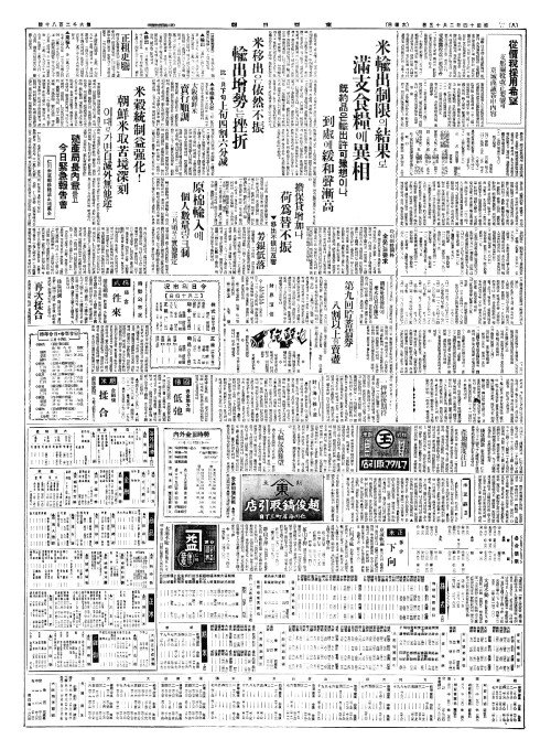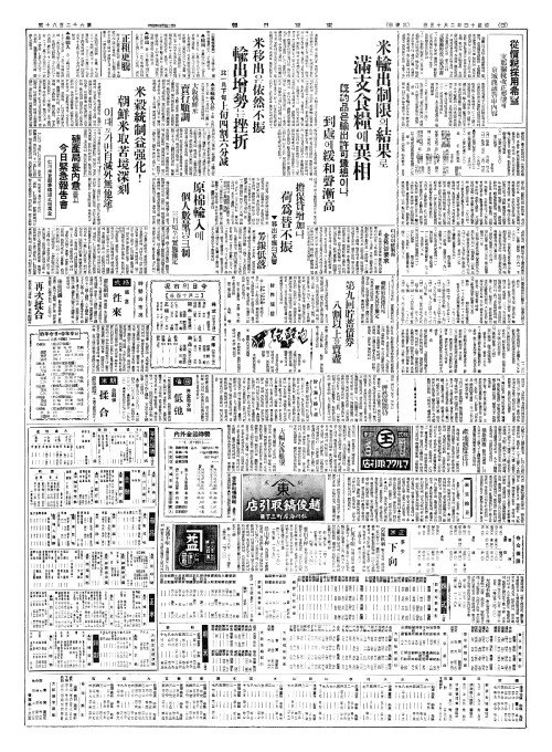 - 米輸出制限(미수출제한)의結果(결과)로 滿支食糧(만지식량)에異相(이상)