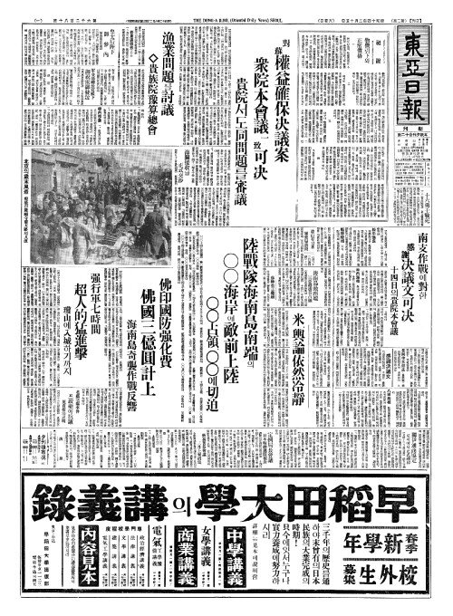- 南支作戰(남지작전)에對(대)한 感謝决議文可决(감사결의문가결)
