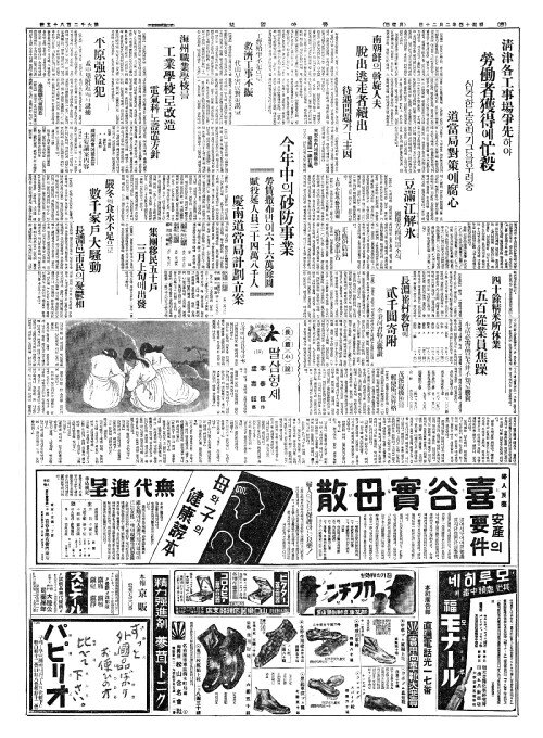 - 淸津各工事場爭先(청진각공사장쟁선)하야 勞働者獲得(노동자획득)에忙殺(망쇄)