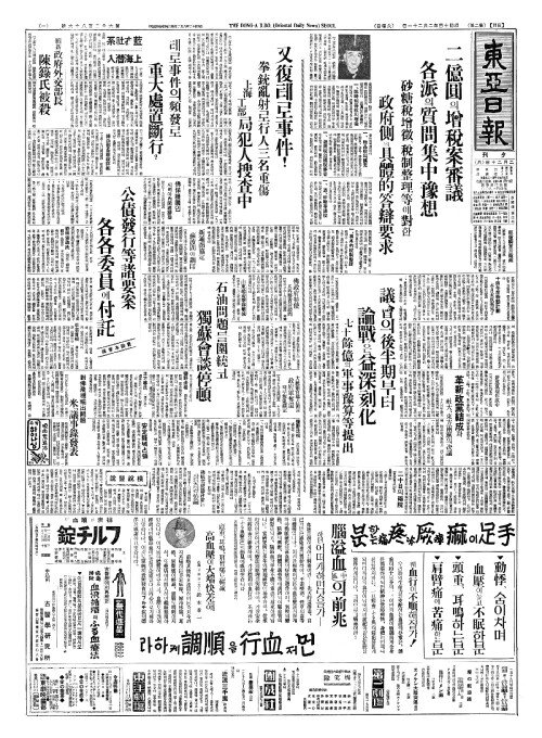- 二億圓(이억원)의增稅案審議(증세안심의) 各派(각파)의質問集中豫想(질문집중예상)