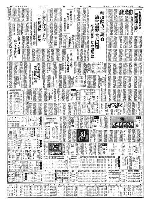 - 輸出餘力七萬石(수출여력칠만석) 滿支需要充足困難(만지수요충족곤난)