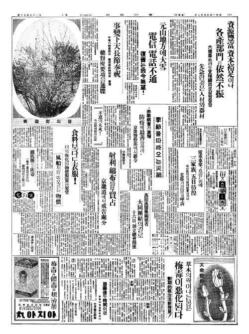 - 元山地方(원산지방)에大雪(대설) 電信(전신)、電話不通(전화부통)