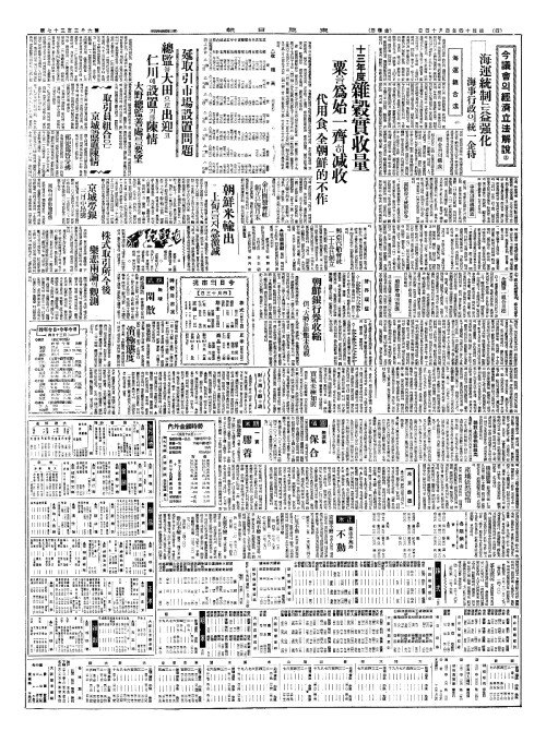 - 朝鮮米輸出(조선미수출) 上旬(상순)들자急激减(급격감)