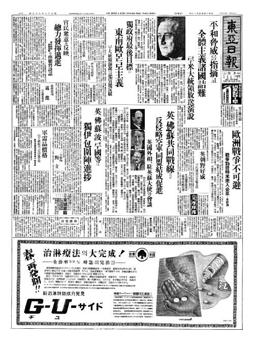 - 歐洲情勢緊迫(구주정세긴박)으로 米國內好戰論橫行(미국내호전론횡행)