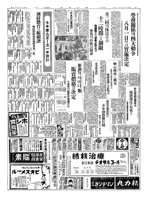 - 勞務關係(노무관계)의四大勅令(사대칙영) 八月一日(팔월일일)부터實施决定(실시결정)
