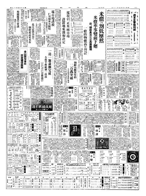 - 米價(미가)의割低歷然(할저역연) 米價率事變前下廻(미가률사변전하회)