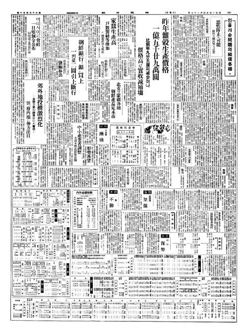 - 昨年雜糓生產價格(작년잡곡생산가격) 一億五千廿九萬圓(일억오천입구만원)