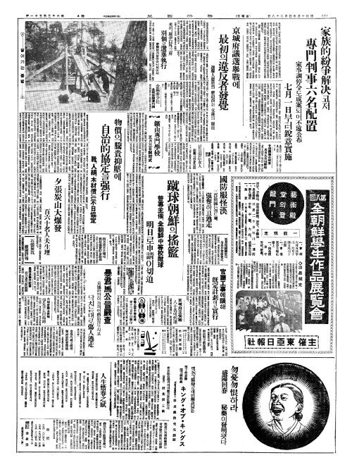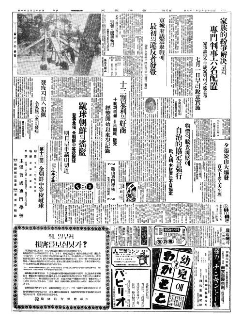 - 家族的紛爭解决(가족적분쟁해결)코저 專門判事六名配置(전문판사륙명배치)