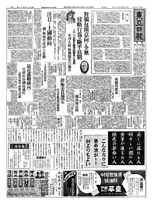 - 對獨包圍意向(대독포위의향)은全無(전무) 侵略行爲(침략행위)엔斷乎抗戰(단호항전)
