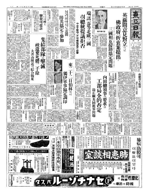 - 來二十二日伯林(내이십이일백임)에서 獨伊軍事協定調印(독이군사협정조인)