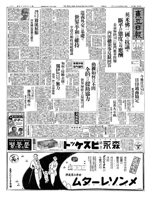 - 英米佛三國(영미불삼국)의抗議(항의)에 斷乎(단호)한態度(태도)로써應酬(응수)