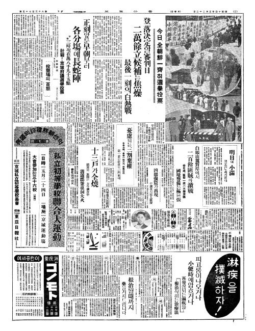- 今日(금일)、全朝鮮一齊(전조선일제)히選擧投票(선거투표)