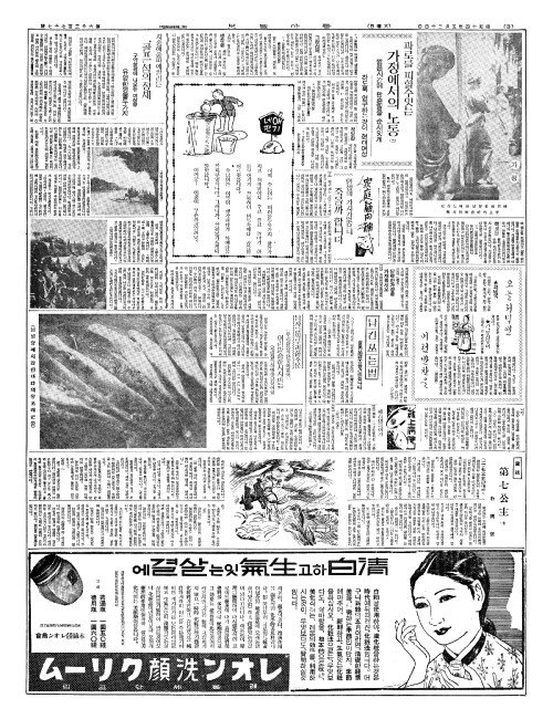 - 航空郵便激增(항공우편격증) 四月中(사월중)에五萬餘通(오만여통)