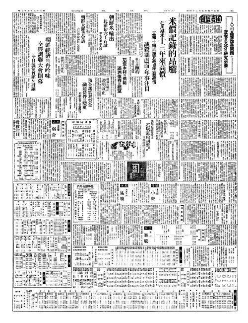 - 米價記錄的昂騰(미가기록적앙등) 仁川期米十三年來高價(인천기미십삼년내고가)!