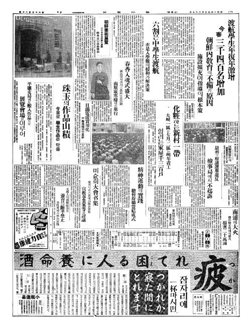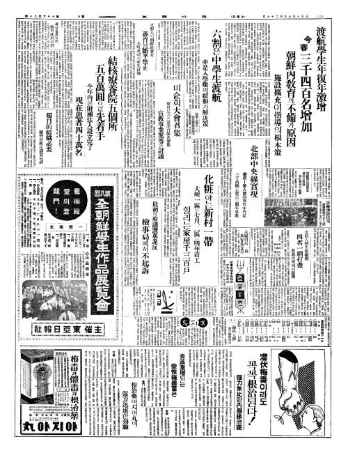- 渡航學生年復年激增(도항학생년복년격증) 今春三千四百名增加(금춘삼천사백명증가)