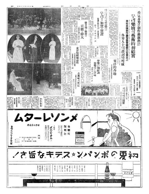 - 朝鮮樂劇團(조선요극단) 歸還報吿公演(귀환보고공연) 六月十二日(륙월십이일)부터四日間(사일간)