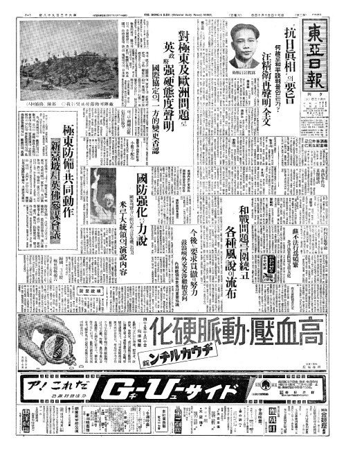 - 汪精衛(왕정위)의聲明(성명)=承前(승전)