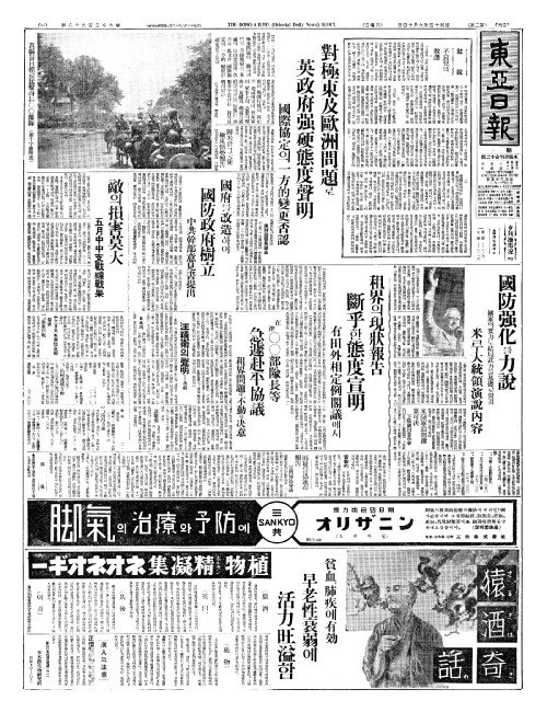 - 對極東及歐洲問題(대극동급구주문제)로 英政府强硬態度聲明(영정부강경태도성명)
