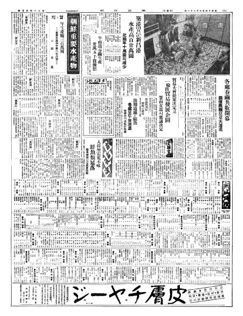 - 築港(축항)앞둔新昌港(신창항) 水產高百廿萬圓(수산고백입만원)