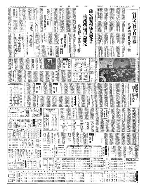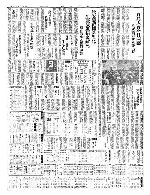 - 貿易大會今日開幕(무역대회금일개막) 重要議案廿八件上程(중요의안입팔건상정)