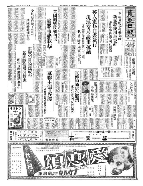 - 英人憲兵白晝暴行(영인헌병백주폭행) 現地當局(현지당국)은嚴重抗議(엄중항의)