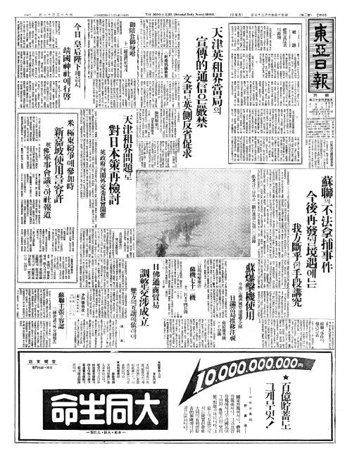 - 天津英租界當局(천진영조계당국)의 宣傳的通信(선전적통신)은嚴禁(엄금)