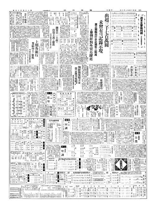 - 出超三千七百萬圓(출초삼천칠백만원) 未曾有(미증유)의記錄示現(기록시현)