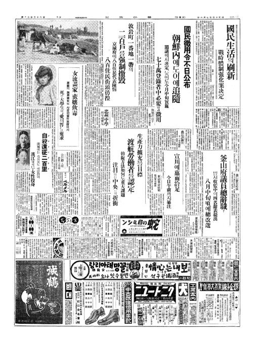 - 國民徴用令不日公布(국민징용령부일공포) 朝鮮內(조선내)에도이에追隨(추수)