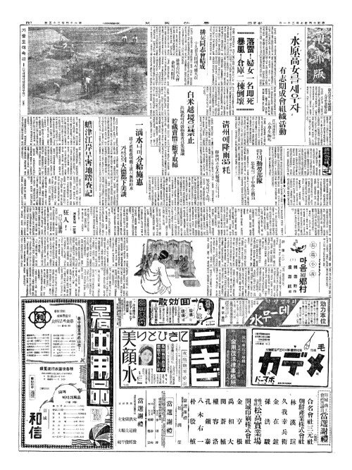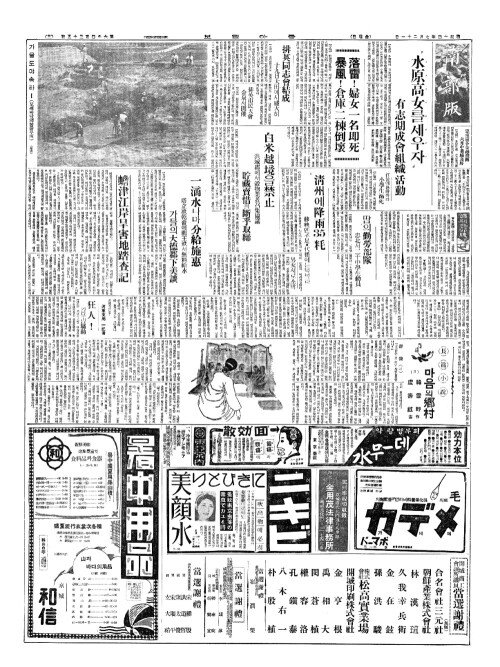 - 落雷(락뢰)!婦女一名即死(부여일명즉사) 暴風(폭풍)!倉庫二棟倒壞(창고이동도괴)