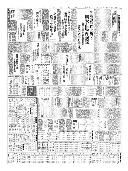 - 新規賣買停止解除(신규매매정지해제)로 期米市塲再强騰(기미시장재강등)