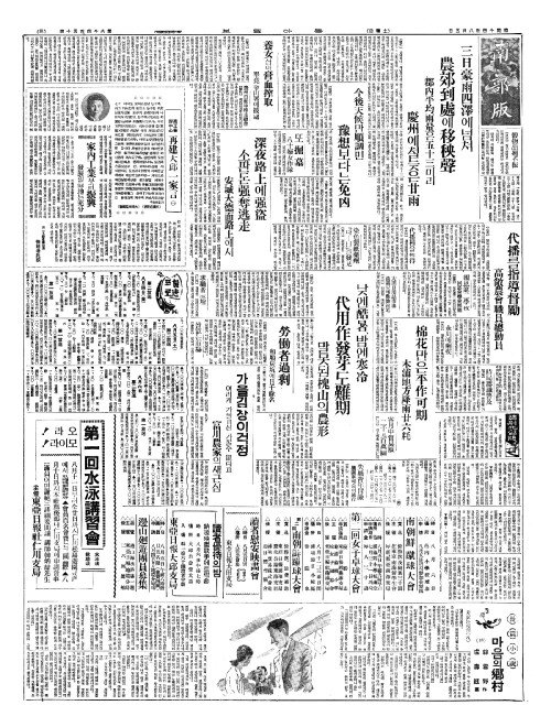 - 府營水泳場(부영수영장) 七日(칠일)부터公開(공개)