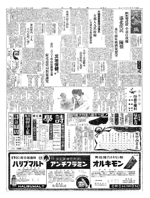 - 피、땀의勞賃(로임)으로 旱地災民(한지재민)을同情(동정)