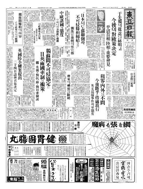 - 獨蘇間不可侵協定(독소간부가침협정)은 日英兩國牽制(일영량국견제)의術策(술책)?