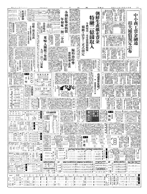 - 中小商工資金融通(중소상공자김융통) 損失補償規定公布(손실보상규정공포)