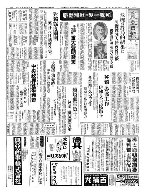 - 對獨態度闡明(대독태도천명) 英(영)、廿八日議會召集(입팔일의회소집)코