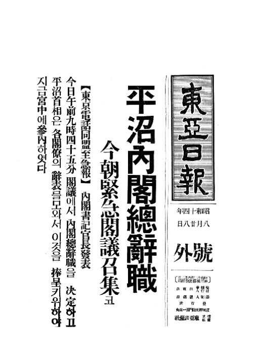 - 平沼首相(평소수상) 池田成彬氏(지전성빈씨)와要談(요담)