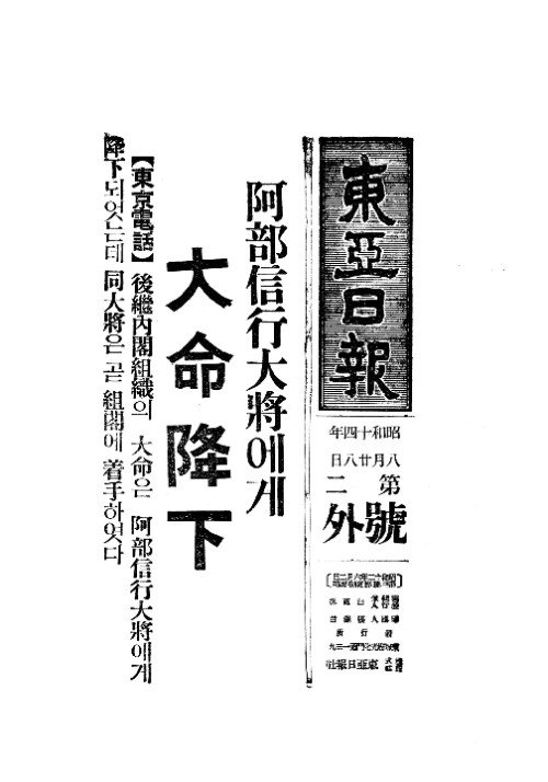 - 무首相今明間(수상금명간) 重大聲明發表(중대성명발표)