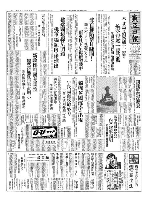 - 米(미)、比島(비도)에偵察機(정찰기)와 航空母艦一隻急派(항공모함일척급파)