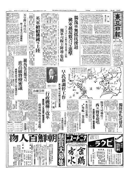 - 獨逸軍無抵抗後退(독일군무저항후퇴) 佛軍越境數(불군월경수)킬로進擊(진격)