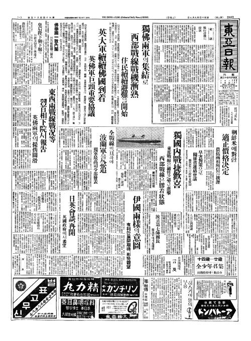- 東西兩戰線戰况等(동서량전선전황등) 췜首相下院(수상하원)서報吿(보고)