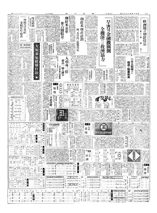 - 旱害(한해)와金融機關側(김융기관측) 全機能(전기능)으로救濟協力(구제협력)