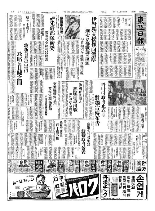 - 歐洲(구주)에大戰勃發(대전발발)로 魚粉販路(어분판노)가暗澹(암담)