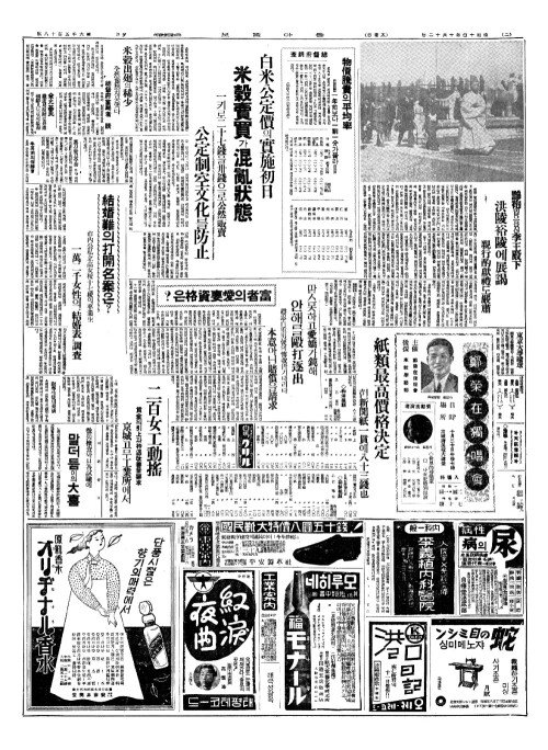 - 白米公定價(백미공정가)의實施初日(실시초일) 米榖賣買(미곡매매)가混亂狀態(혼란상태)