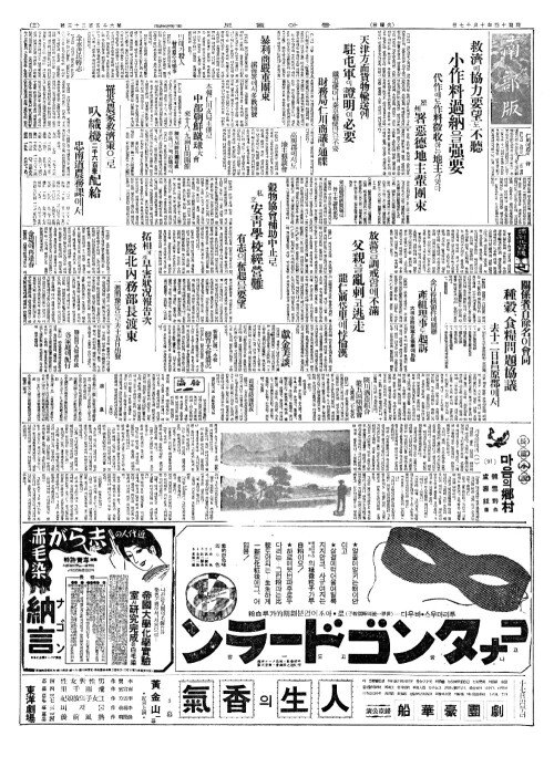 - 罹災農家救濟策(리재농가구제책)으로 叺織機二千六百臺配給(입직기이천륙백대배급)
