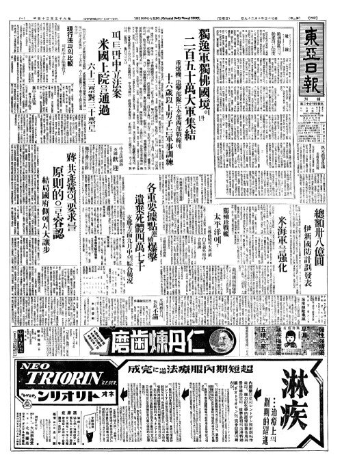 - 獨逸軍獨佛國境(독일군독불국경)에만 二百五十萬大軍集結(이백오십만대군집결)