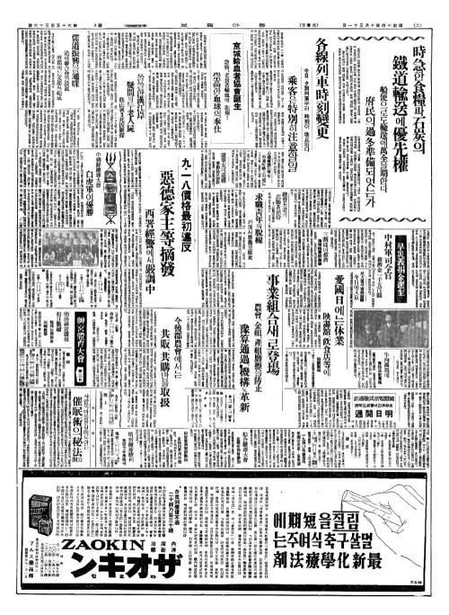 - 勞務動態調查規則(로무동태조사규즉) 來月中實施(내월중실시)?