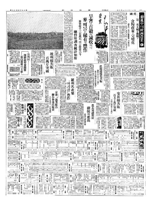 - 旱害(한해)로百糓(백곡)이减收(감수)이나 麥(맥)、메물은稀有(희유)의豐作(풍작)