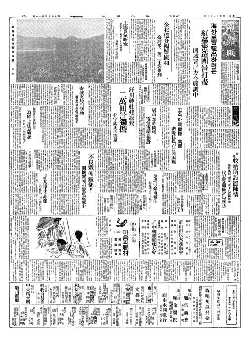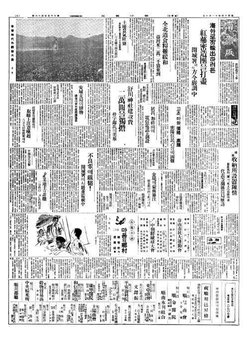 - 旱災義捐金遝至(한재의연김답지) 땀흘려모은廿餘圓(입여원)