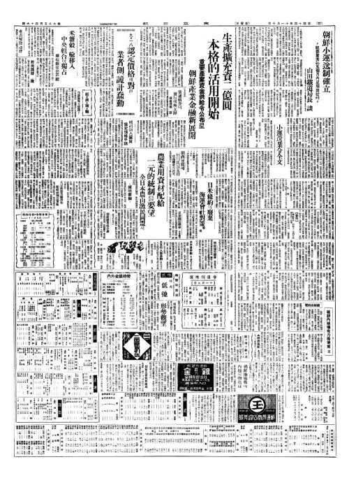 - 農業用資材配給(농업용자재배급) 一元的統制(일원적통제)를要望(요망) 全日本農山漁民同盟(전일본농산어민동맹)서
